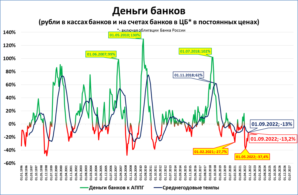 Обратите внимание на график 3: ЦБ зажимает деньги банков с 2019 года. И это при том, что все кризисы (1998, 2008, 2015) обязательно связаны с такими зажимами.