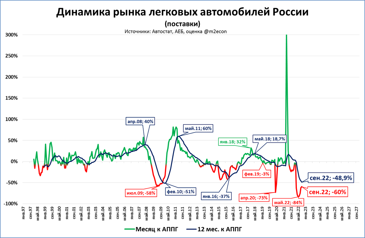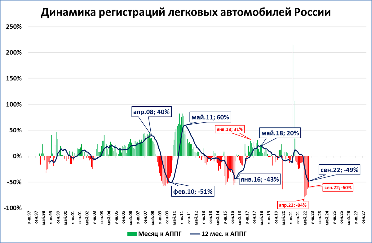 За 8 месяцев падение составило тоже -60%. Если такая динамика сохранится до конца года, то по итогам будет продано чуть больше 600 тыс. автомобилей.