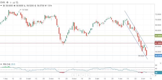 С точки зрения теханализа на дневном графике акции CMS продолжают движение в нисходящем канале, подойдя к его нижней границе. Индекс относительной силы (RSI) при этом вошел в зону перепроданности, что может поддержать котировки. При развороте уровни $ 61,2 и $ 64,0 станут ближайшими важными целями для инструмента.