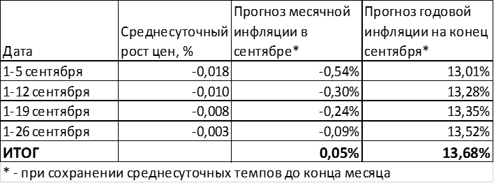 В первые дни октября среднесуточный рост цен составил 0,01%.