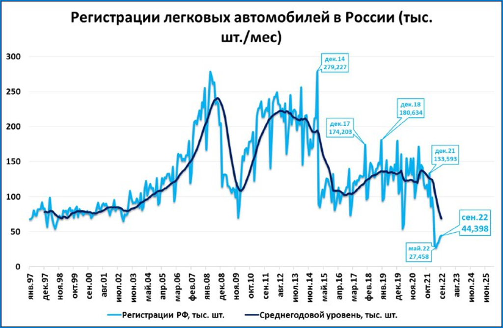 Регистрации легковых в сентябре и антирекорд за всю историю наблюдений