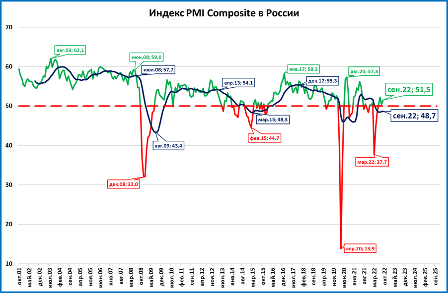 ● Российские индексы PMI в секторе услуг и сводный (объединяет промышленность и сектор услуг) в позитивной зоне и говорят о росте деловой активности в сентябре.