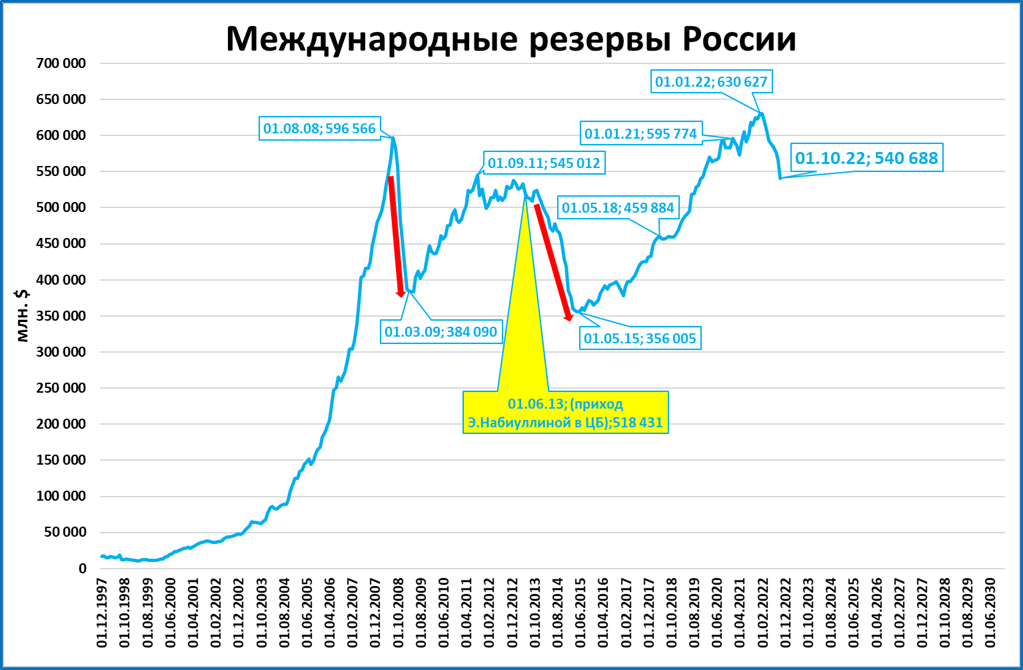 ● ЗВР сократились на 9 млрд долларов за неделю и на 25 млрд. за месяц. По-прежнему это не несёт угроз, так как вызвано не губительными интервенциями ЦБ, а пересчётом (юань, евро и золото дешевеют по отношению к доллару).