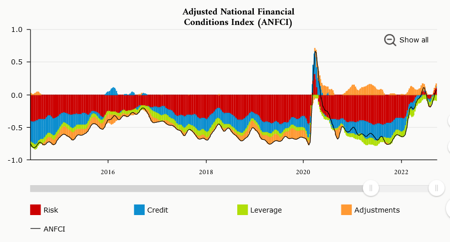 Похожую картину даёт очищенный (от влияния экономических условий) индекс финансовых условий от Резервного Банка Чикаго: