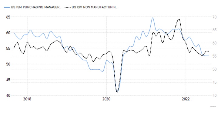 5. США: ФРС показывает, что намерена решительно добиваться снижения инфляции, охлаждая спрос в экономике. Мы полагаем, что уже до конца года ставка может превысить 4% (максимум с 2007 г.), достигнуть максимальных значений в I квартале 2023 г. (4,5-5%) и оставаться вблизи этих уровней до конца года. Доходности 2-летних UST уже превысили 4%. Спрос пока остается относительно устойчивым, но на фоне сокращения «эффекта богатства» и роста процентных ставок экономика переходит к торможению, наиболее уязвимы товары длительного пользования и недвижимость. В то же время условия для промышленного сектора из-за более низких издержек на электроэнергию остаются значительно лучше, чем в ЕС. На этом фоне ряд европейских компаний переводит производственные подразделения в США.