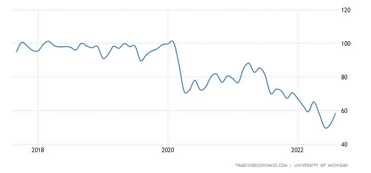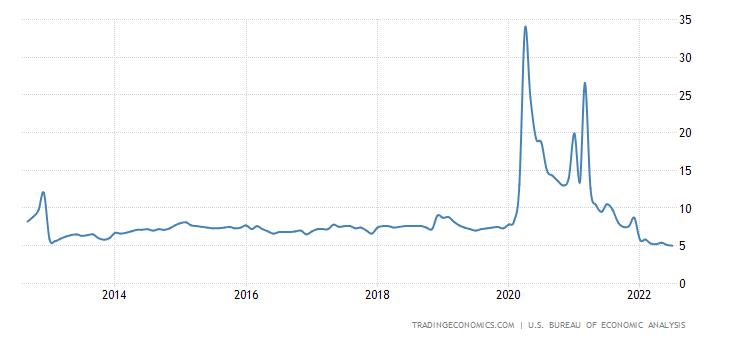 Хотя рост зарплат и занятости поддерживают номинальный рост доходов населения, с учетом высокой инфляции и сворачивания экстренных фискальных стимулов периода пандемии реальные располагаемые доходы в годовом выражении сокращаются. Сокращаются и накопления, сделанные населением в пандемию, — норма сбережений вернулась к доковидному уровню и опустилась до минимума с 2008 г. Впрочем, индекс потребительского доверия от Мичиганского университета, достигнув в июне минимального значения за всю историю, в сентябре поднялся до 5-месячного максимума — настроения потребителей улучшаются на фоне снижения цен на бензин.