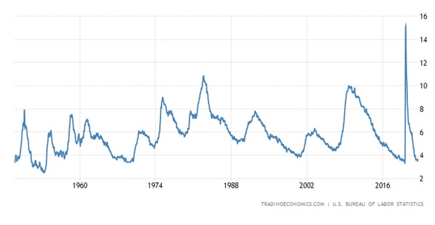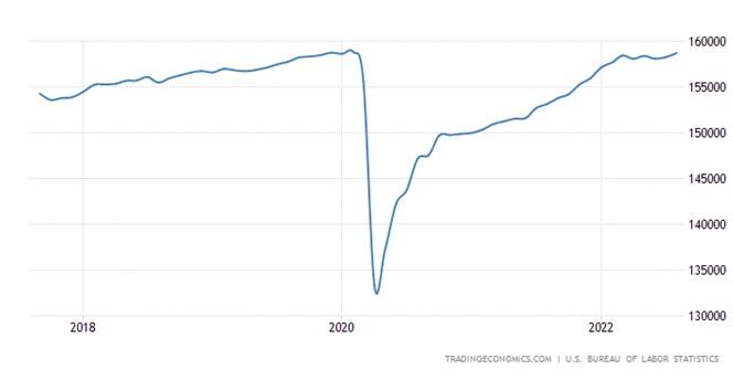 Рынок труда оценивается ФРС как перегретый (спрос на рабочую силу существенно превышает предложение, хотя данные за август показали сокращение прироста рабочих мест, небольшое увеличение безработицы (с 3,5% до 3,7%) и замедление роста почасовой оплаты труда. Тем не менее безработица близка к минимумам с конца 1960-х гг., а число открытых вакансий примерно в два раза превышает число безработных. Недельные данные по первичным заявкам на пособие по безработице в сентябре опустились до минимума с мая. Численность занятых практически восстановилась с февраля 2020 г., однако уровень участия населения в рабочей силе (participation rate) пока не восстановился — те, кто в период пандемии выбыл с рынка труда, не спешат возвращаться обратно. Дефицит рабочей силы заставляет компании увеличивать зарплаты сотрудникам, что в условиях высокой инфляции грозит раскручиванием спирали «зарплаты-цены», характерной для 1970-1980 гг. Как неоднократно отмечал глава ФРС Джером Пауэлл, для возвращения инфляции к цели (2%) необходимо сокращение дисбаланса избыточного спроса и недостаточного предложения на рынке труда, что потребует более высокого уровня безработицы. По оценкам члена совета управляющих ФРС Кристофера Уоллера, ФРС имеет возможности продолжать агрессивное повышение ставок для снижения инфляции до тех пор, пока безработица остается ниже 5%, а при более высокой безработице придется искать компромисс. Пока же уровень безработицы значительно ниже и вблизи исторических минимумов.
