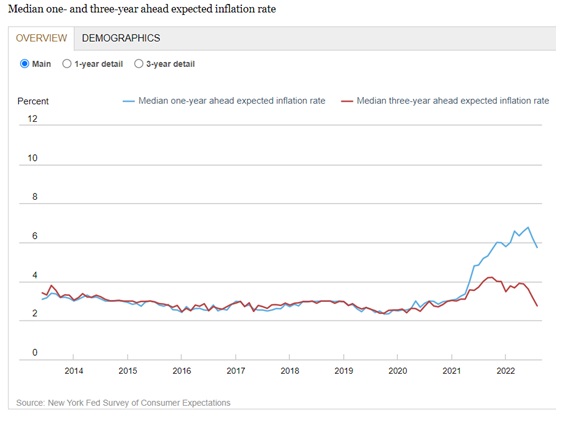 Приближение долгосрочных инфляционных ожиданий к таргету ФРС по инфляции (2%) и общее снижение инфляционных ожиданий может быть оценено как сигнал, что риски их «разъякоривания», при котором центробанк теряет контроль над инфляцией, сокращаются. То есть действия ФРС начинают давать результат и, возможно, для снижения инфляции не потребуется слишком сильное повышение ставок.