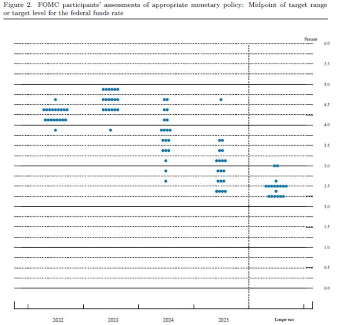 График индивидуальных прогнозов процентной ставки ФРС, сентябрь 2022 г.