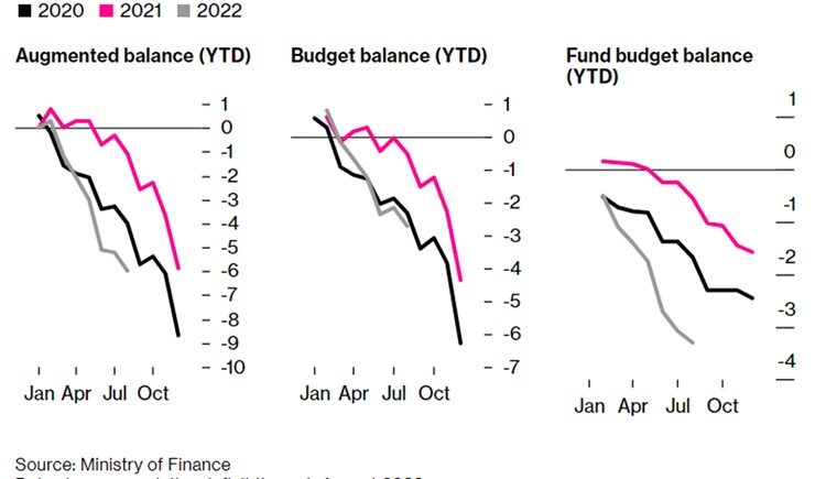 Бюджетный дефицит США возвращается к доковидной траектории после рекордных со Второй мировой войны дефицитов в 2020-2021 гг., связанных с поддержкой экономики в период антиковидных ограничений. Это убирает избыточное стимулирование спроса в экономике, способствовавшее разгону инфляции. Бюджетное управление Конгресса (CBO) ожидает, что в текущем финансовом году дефицит бюджета страны может оказаться ниже $1 трлн после $2,776 трлн в 2021 фингоду. Однако остается существенная неопределенность будущих расходов в связи с инициативой президента США Джо Байдена о списании студенческих кредитов, направленной на снижение долговой нагрузки американцев, бравших кредиты на образование.