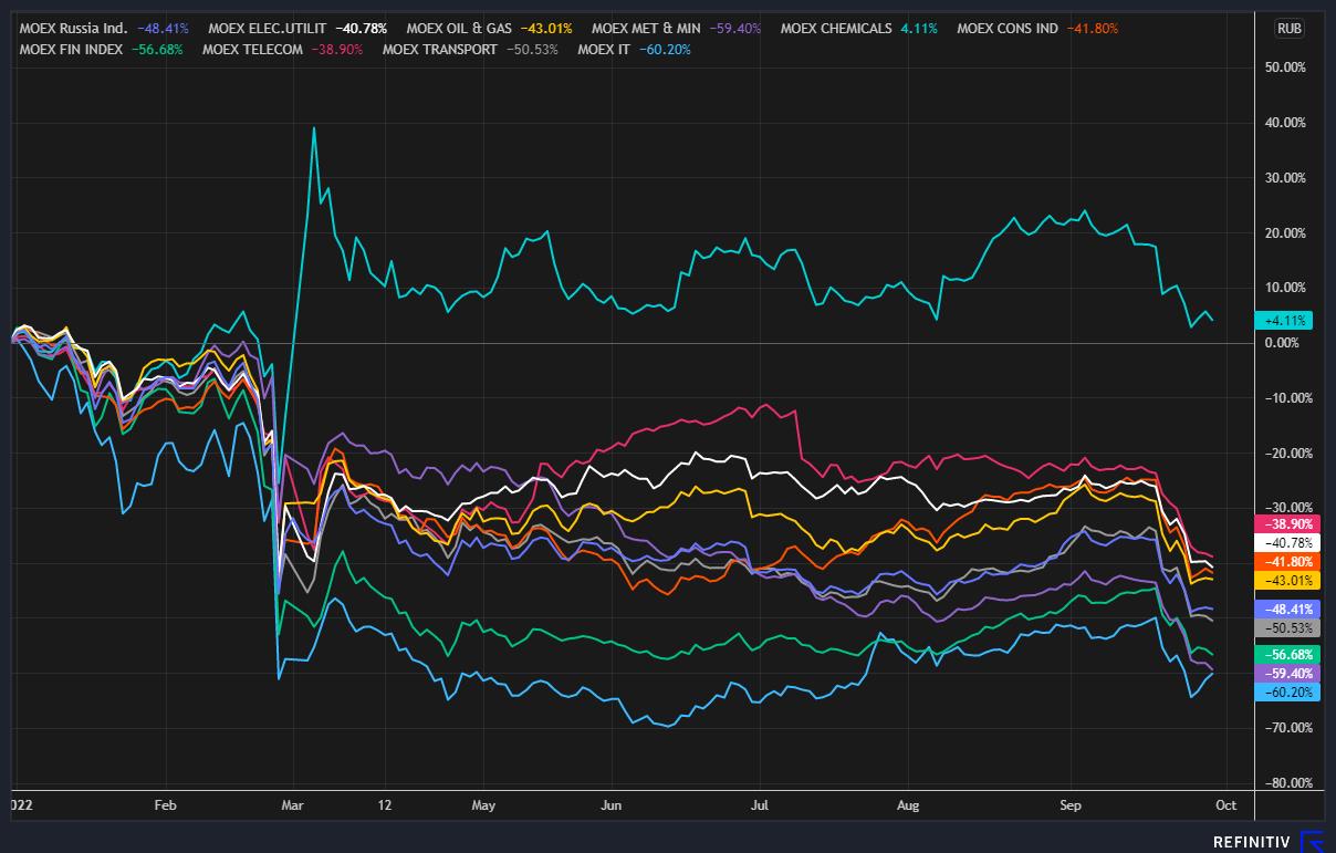 8. Россия: деловая активность в целом по экономике во II квартале и в начале III квартала складывалась лучше ожиданий. Но в секторах, затронутых санкциями, логистическими проблемами, контрсанкциями и переживших уход иностранных контрагентов ощущается существенный спад. Заметное увеличение планового дефицита бюджета в 2023-2024 гг. по сравнению с июньскими проектировками Минфина, дополнительные бюджетные расходы в связи с присоединением новых территорий, вероятно, будут учтены ЦБ и отразятся в более высоких значениях ключевой ставки. В свете последних событий усиливаются риски перевода экономики на мобилизационные рельсы, что грозит расширением санкций, увеличением налоговой нагрузки, сокращением доступных ресурсов для развития секторов, ориентированных на потребительский рынок. Мобилизация в сочетании с усилением миграционного оттока может приводить к дефициту рабочей силы, снижению объемов выпуска в отраслях, не связанных с ОПК, ослаблению потребительской активности. Присоединение ЛДНР, Херсонской и Запорожской областей создают существенную неопределенность в плане увеличения бюджетных расходов и возможного изменения характера военного конфликта после добавления новых территорий в состав России (особенно, с учетом последовавшего запроса Украины об ускоренном вступлении в НАТО).