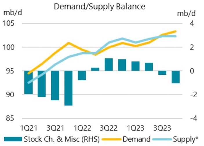 Прогноз по росту спроса в 2023 г. оставлен без пересмотра, тогда как оценка по самому спросу повышена из-за переоценки показателя 2021 г. По оценке МЭА, спрос будет превышать предложение в 2023 г. на 2,1 млн барр./сут., в основном за счет надежд на восстановление в Китае.