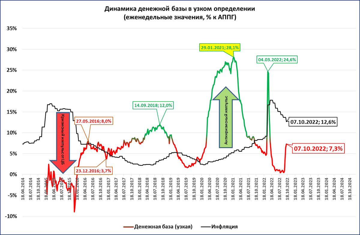 Но это всё равно ниже инфляции (по итогам октября ожидается 12,6%). А значит, в реальном выражении УДБ сокращается.