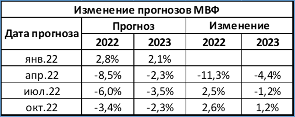 Прогнозы по США и Европе ухудшаются, а по России улучшаются. В этом же русле высказался и The Economist (см. публикацию в “Ведомостях” с подзаголовком “Начало спада в ЕС и выход РФ из кризиса констатировал The Economist”)