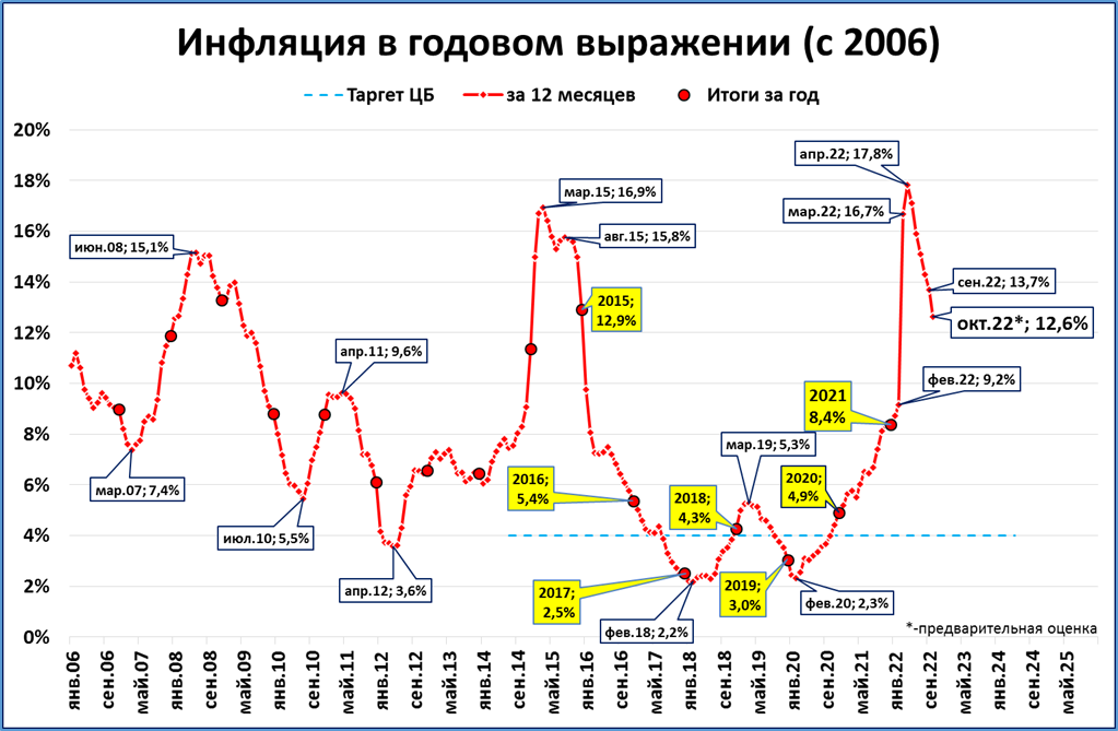 Но это всё равно ниже инфляции (по итогам октября ожидается 12,6%, см. далее). А значит, в реальном выражении УДБ пока сокращается.