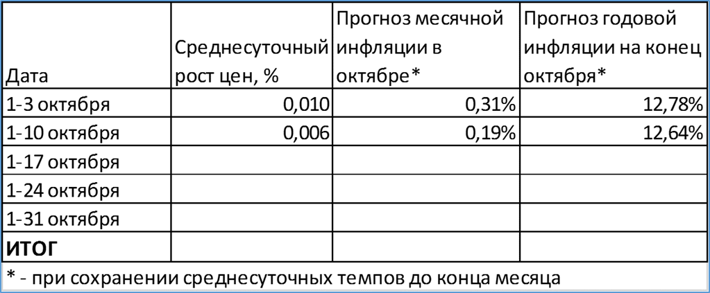 Если такой темп сохранится до конца месяца, то на конец октября инфляция снизится до 12,6% годовых.
