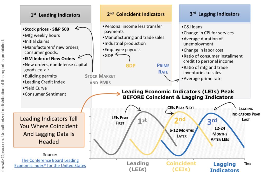 На эти вопросы помогают ответить опережающие, синхронные и запаздывающие индикаторы экономической активности. Их состав остаётся стабильным на протяжении десятилетий, что позволяет делать на основе этого состава выводы о причинно-следственной динамике экономического цикла.