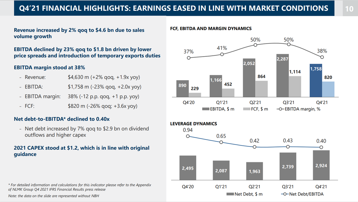 У НЛМК ND/EBITDA = 0,4. Чистый долг был около трёх миллиардов долларов.