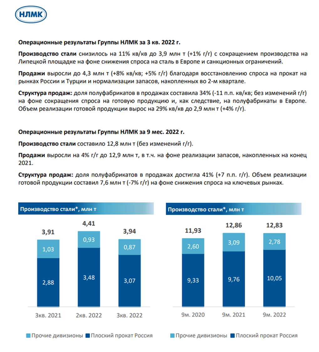Компании с начала СВО приостановили публикацию финансовой отчётности, но зато продолжают выпускать операционные результаты, которые дают хоть какое-то представление о делах компаний. В середине октября были опубликованы данные за третий квартал 2022 года.