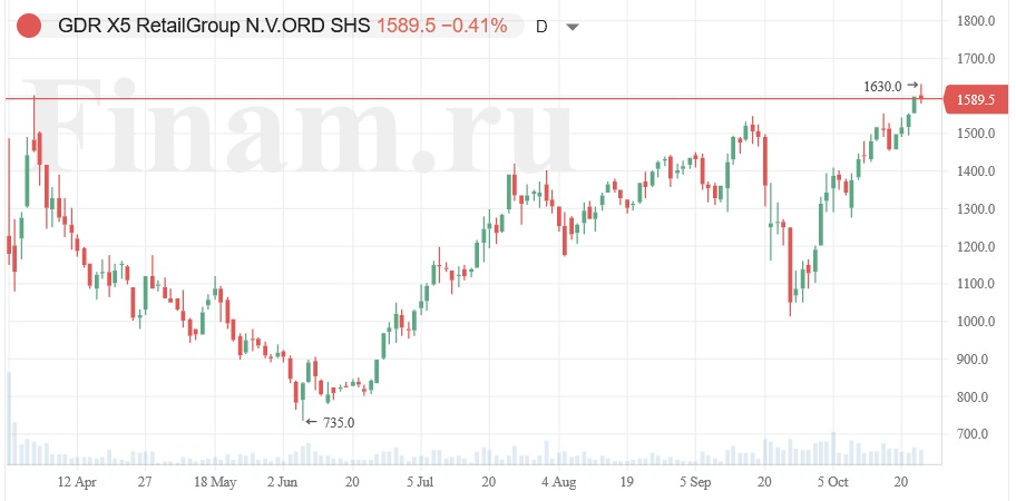Несмотря на сильный отчет, акции X5 сегодня дешевеют на 0,47%, до 1588,5 рубля.