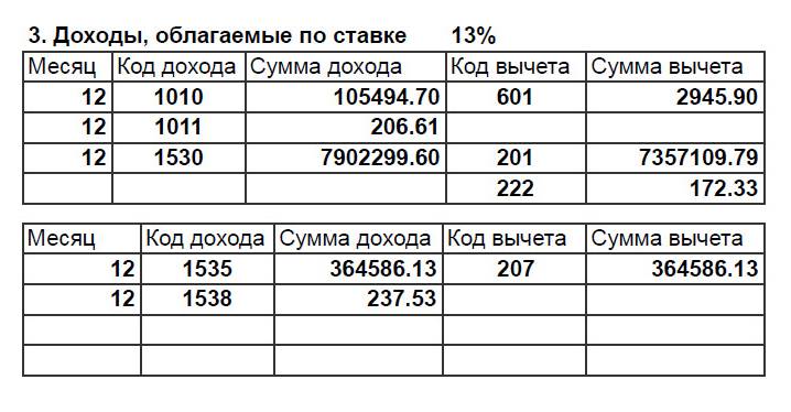 Из суммы дохода нужно отнять суммы вычетов, указанные справа от этого кода дохода. Вычетов может быть несколько.