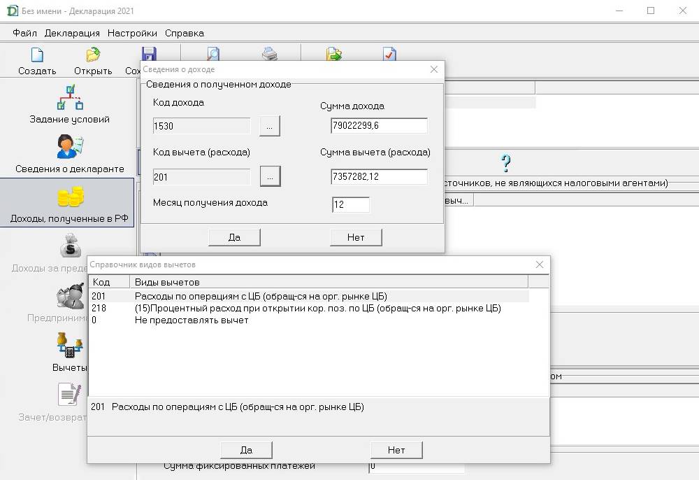 В программе нет всех предусмотренных законодательством видов вычетов. Например, программа не дает внести вычет с кодом 222 — это убыток по операциям репо, уменьшающий доход по обращающимся ценным бумагам.