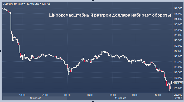 Валюта к 13:44 мск подскочила на 1,3% до 139,21 за доллар, самого сильного уровня с 1 сентября. Ранее японская валюта коснулась максимума на 138,78 за доллар. Более резкое, чем прогнозировалось, падение инфляции в США в четверг улучшило перспективы «голубиного» уклона ФРС.