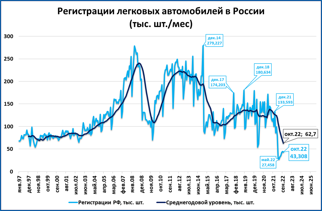 Прогноз итогов года: Если в ноябре-декабре рынок будет на уровне 43 тыс. (как в августе-октябре), то по итогам года регистрации составят около 600 тыс. шт.