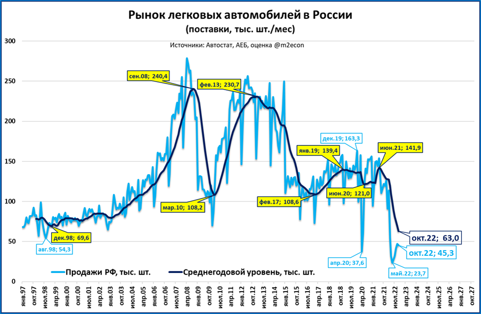А теперь посмотрим статистику поставок легковых автомобилей (сколько производители продали, в т.ч. дилерам).