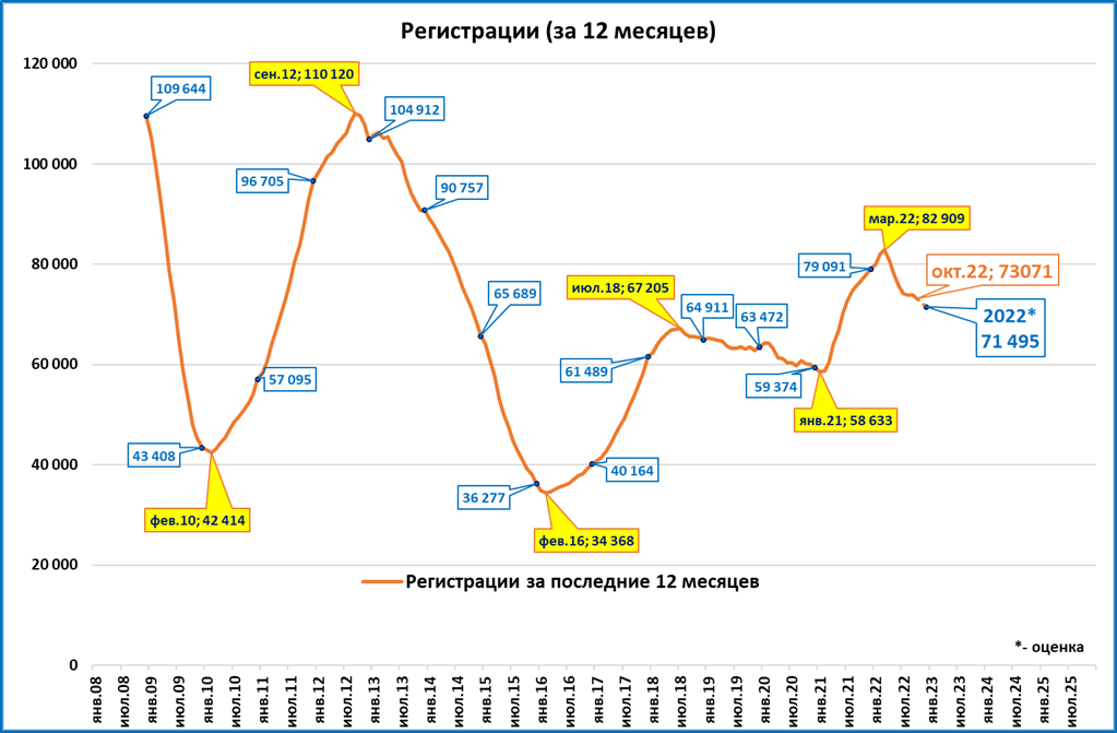 Регистрации за последние 12 месяцев опустились до 752 тыс. шт.