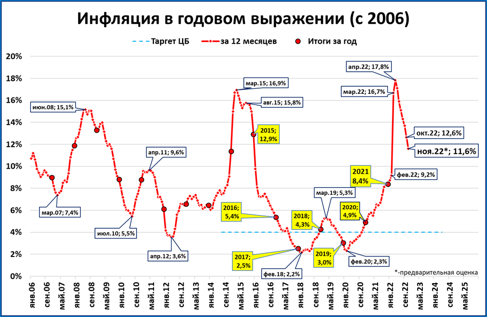 Судя по складывающимся трендам инфляция по итогам года может опуститься до 10,9%.