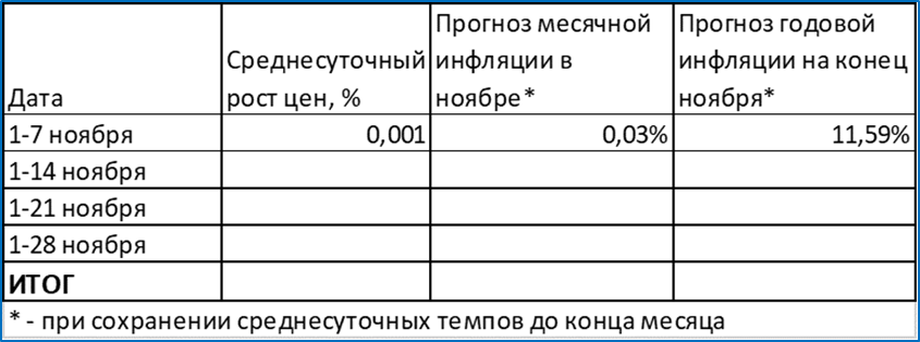 В первые семь дней ноября среднесуточный рост цен оказался очень низким, всего 0,001%.