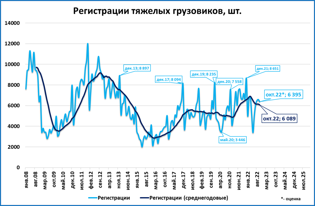 Если тренд сохранится, то рынок за 2022 год составит 71,5 тыс. тяжелых грузовиков.