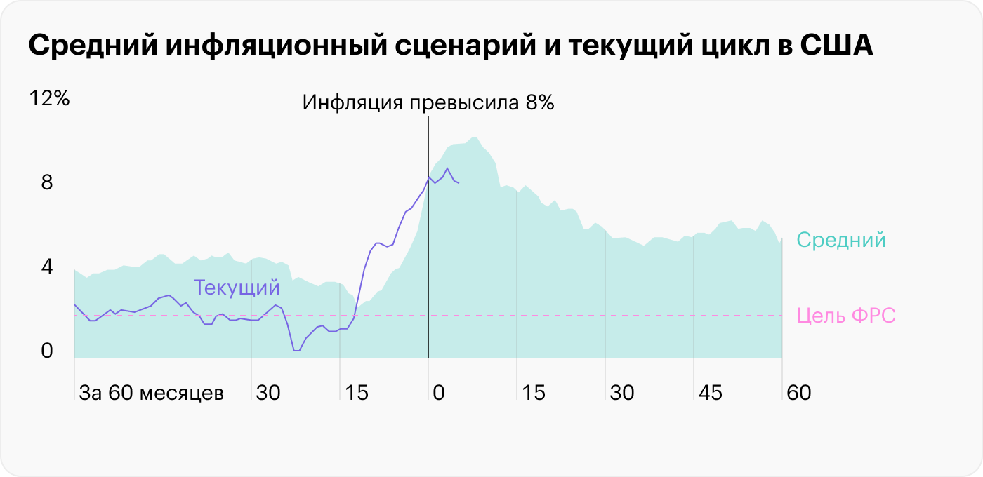 Инфляция в Штатах опустилась ниже 8%, но все еще остается намного выше цели в 2%. За последние 100 лет было больше 300 случаев, когда инфляция в какой-либо стране превышала 8%, как недавно в США.