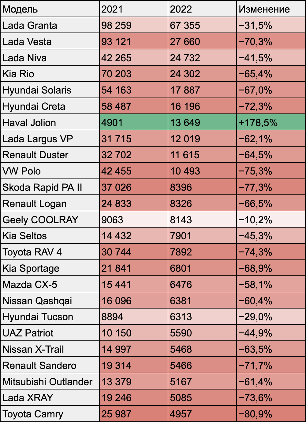Продажи новых машин за январь — октябрь 2022 года снизились на 61% по сравнению с аналогичным периодом 2021 года. В октябре по сравнению с сентябрем они снизились на 3%.