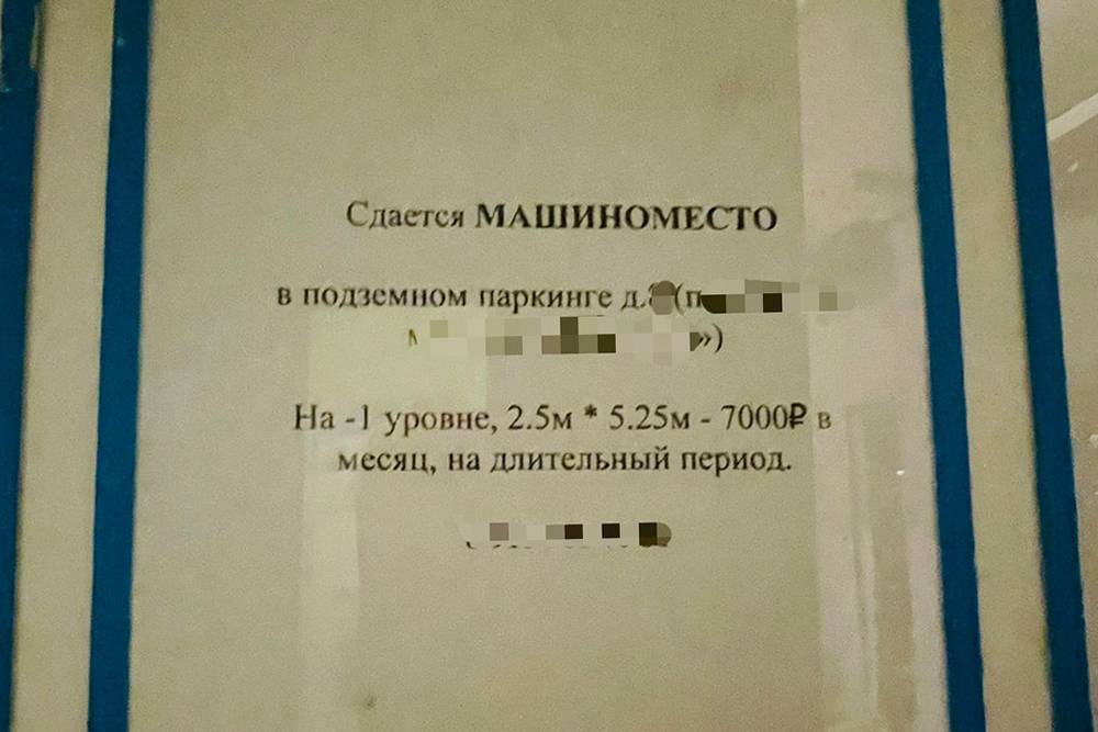 Объявление на машино-месте — клеила прямо на блокиратор. Такой метод рассчитан на тех, кто уже снимает место на этом паркинге или пришел на просмотр другого места.