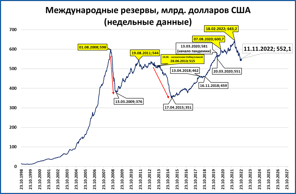 ЗВР уже восьмую неделю (с 9 сентября) находятся в узком диапазоне 540-560 млрд. долларов.