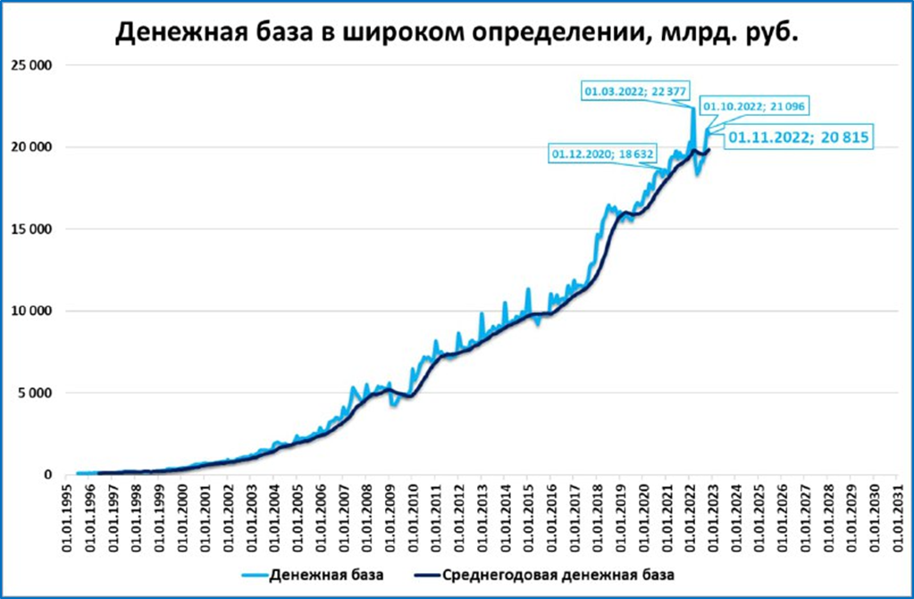 Денежная база в широком определении (или просто ДБ) на 1 ноября осталась выше 20 трлн.