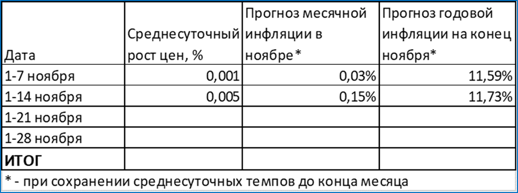 Если такой темп сохранится до конца месяца, то по итогам ноября инфляция составит 11,7% годовых.