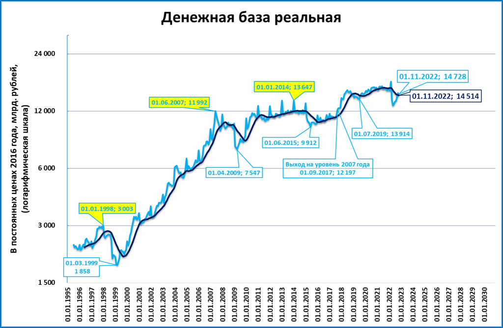 График реальной денежной базы выглядит так.