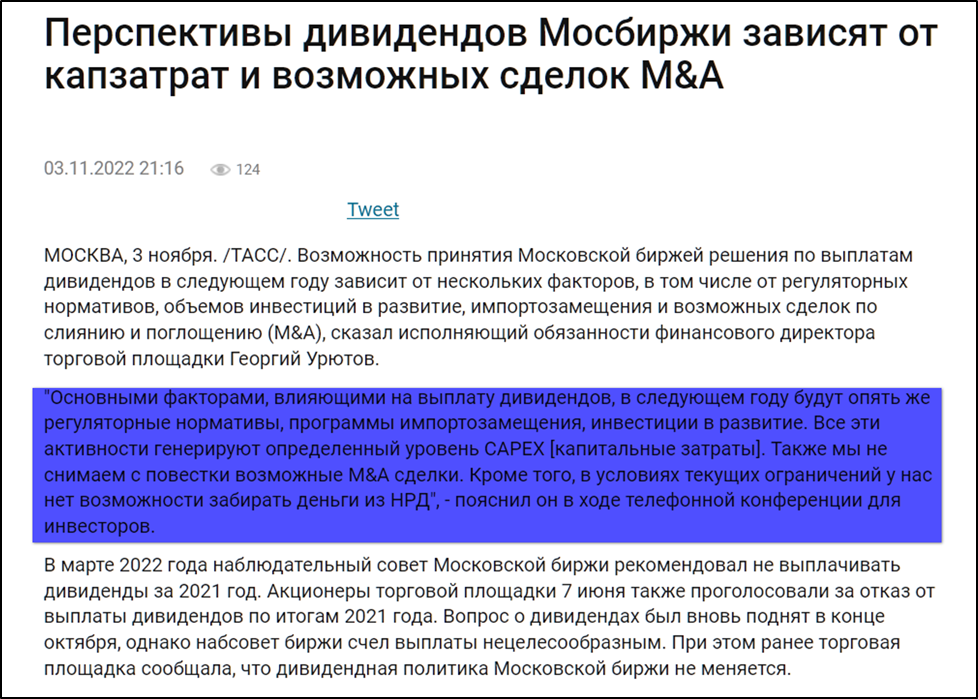 Комментарий менеджера Мосбиржи по перспективам дивидендов