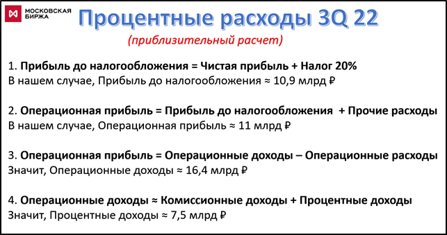 Вернёмся к текущему пресс-релизу. В нём почему-то компания не публикует данных по процентным доходам. Но приблизительный расчёт показывает, что Процентные доходы в третьем квартале могли составить около 7,5 млрд. И это в два раза больше, чем год назад. Но остаётся только догадываться, за счёт чего произошёл такой внушительный рост.