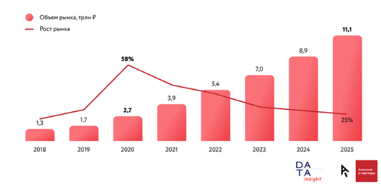 Но потенциал у рынка электронной торговли очень велик, и по прогнозам, до 2025 года объемы продаж должны удвоится. Так что у Озона ещё есть возможности для дальнейшего роста.