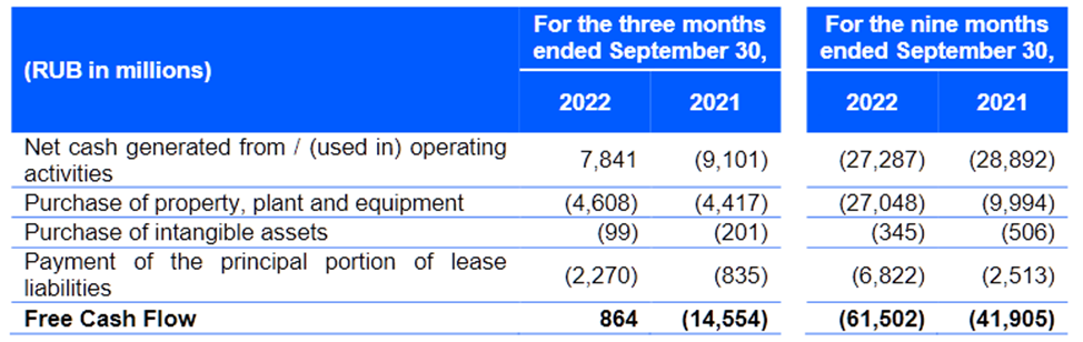 Операционный денежный поток в 3 квартале впервые вышел в плюс и составил 7,8 млрд. Правда, во многом это произошло из-за увеличения кредиторской задолженности и прочих обязательств.