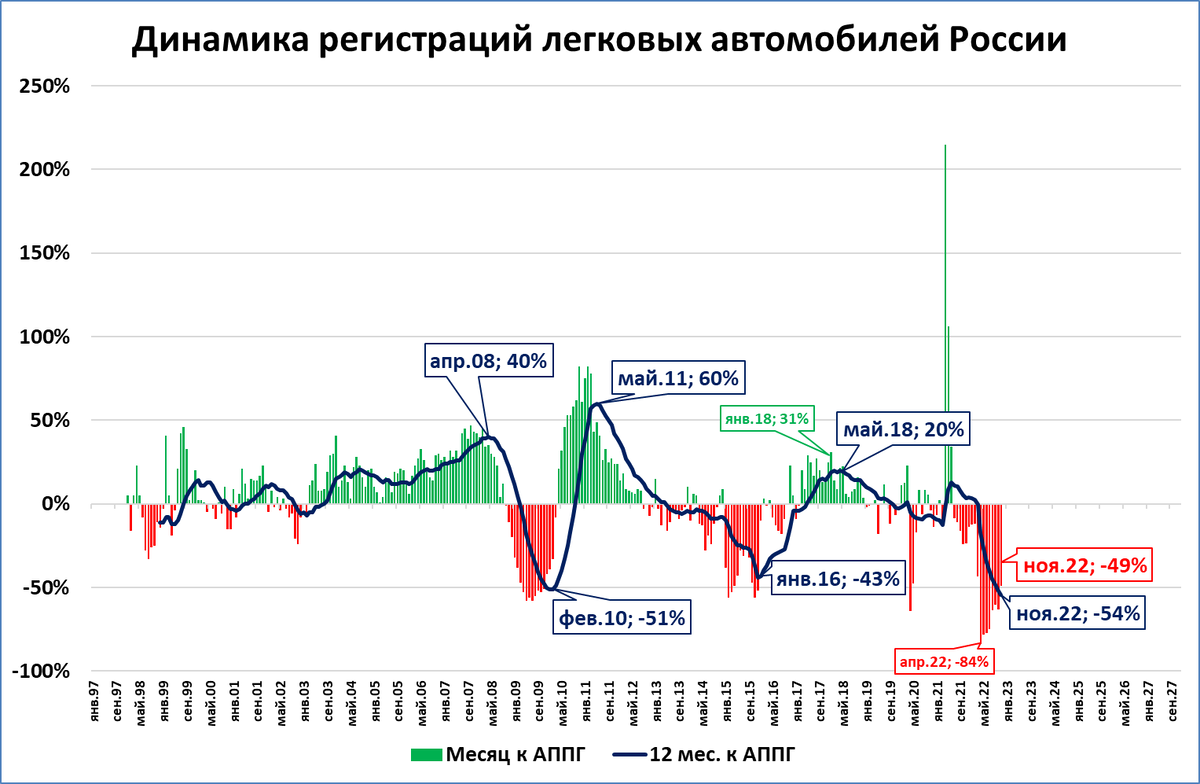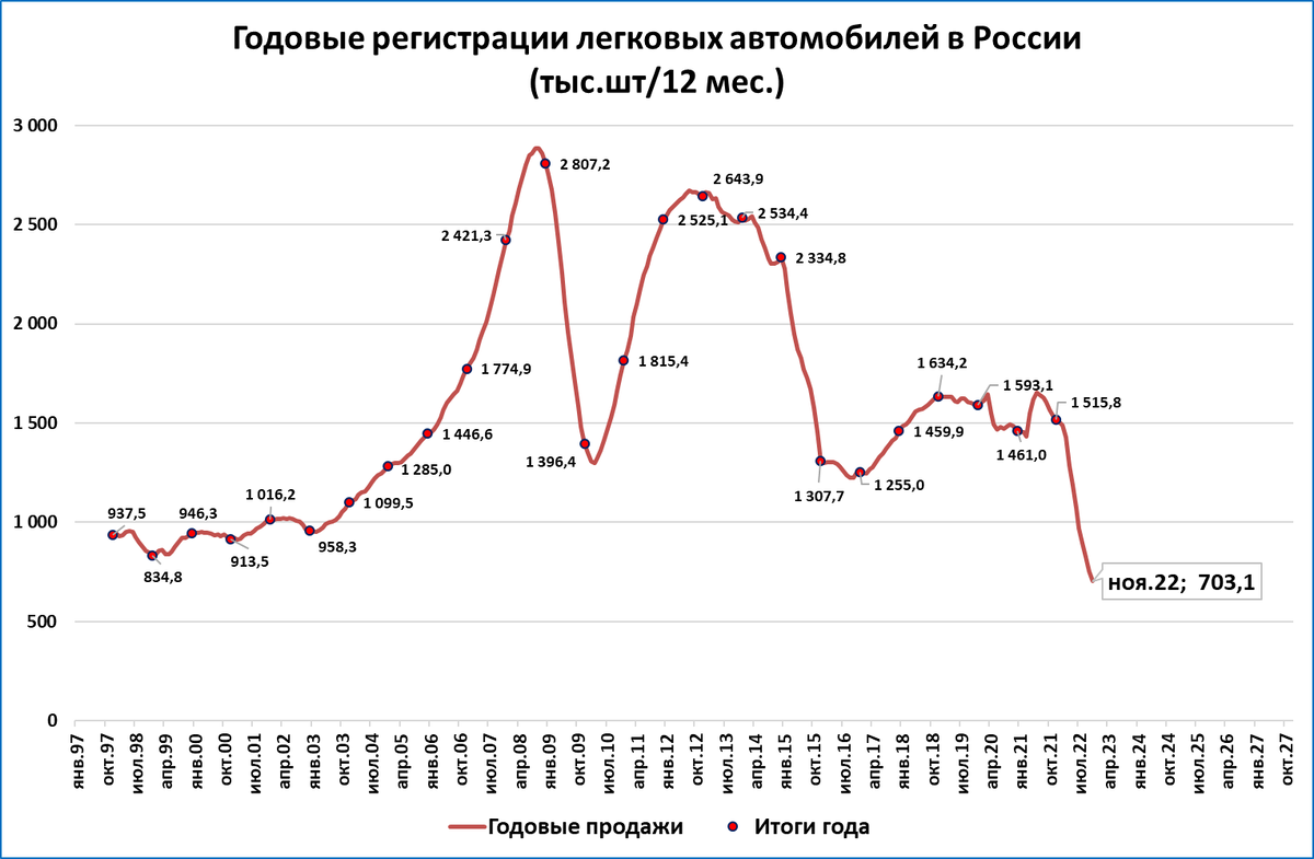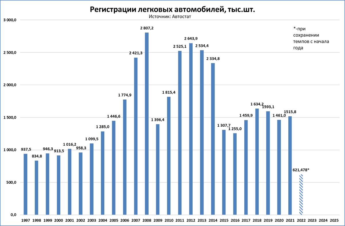 По итогам года регистрации составят порядка 620 тыс. шт, что будет антирекордом за всю историю наблюдений.