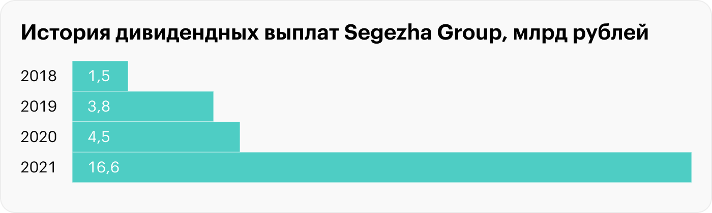 В августе 2022 года менеджмент компании заявил, что лесопромышленный холдинг намерен строго придерживаться своей дивидендной политики. Это значит, что по итогам 2022 года акционеры Segezha Group могут получить выплату в размере от 0,19 до 0,35 Р на одну бумагу.