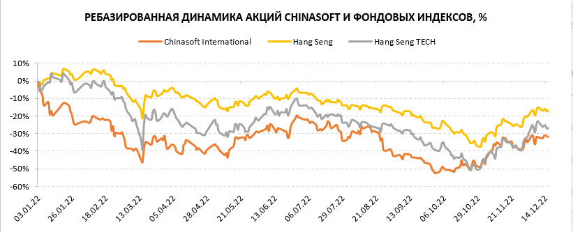 В текущем году акции Chinasoft выглядят слабее широкого рынка, что обусловлено низкой капитализацией, а потому и более высокой волатильностью. В периоды турбулентности инвесторы обычно отдают предпочтение крупным стабильным компаниям и избавляются от потенциально рисковых бумаг. Но в долгосрочной перспективе Chinasoft является одной из наиболее недооцененных и интересных компаний среди эмитентов малой и средней капитализации в китайском техсекторе. Компания имеет богатую историю, опыт на рынке с 2003 года и ежегодно отчитывается о рекордных результатах. Надо отметить, что пока акции недоступны для торговли на СПБ Бирже, но могут там появиться уже в следующем году.