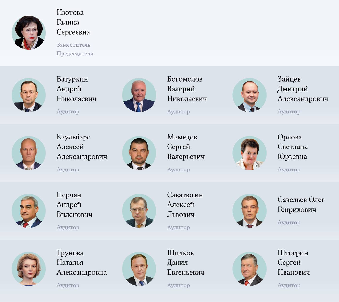 Текущий состав Счетной палаты РФ указан на сайте ведомства. Источник: ach.gov.ru