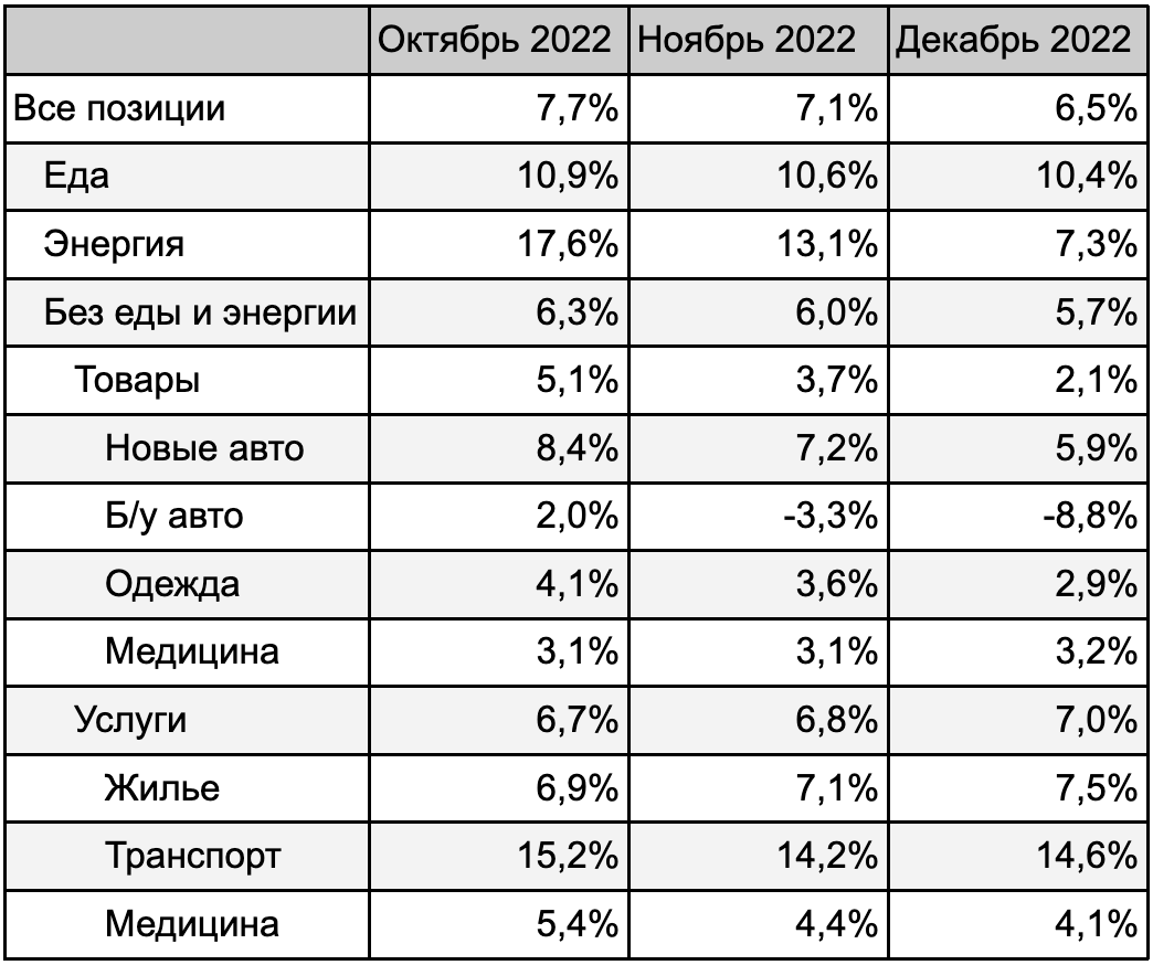12 января опубликовали данные по инфляции за декабрь, которые полностью совпали с прогнозом аналитиков. В годовом выражении потребительские цены увеличились на 6,5%, что заметно меньше рекордных 9,1%. Цены без учета еды и энергии выросли на 5,7%. Рост потребительских цен замедляется с июня, и с каждым отчетом появляется уверенность в том, что Штаты преодолели пик инфляции.
