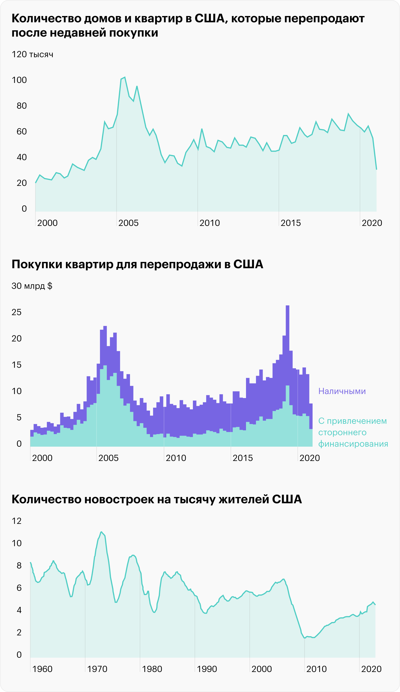 Они ограничивали предложение: домов стали строить меньше, чем раньше, и когда спрос на жилье снова начал расти, потребители столкнулись с недостатком предложения, что привело к росту цен на жилье и снова сделало спекуляции с целью перепродажи недвижимости выгодными, — нынче в США много таких риелторов-самоучек.